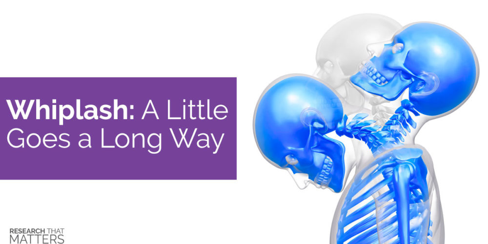 Bottom Line: The term whiplash is the term used to describe the injuries that result from a rapid back and forth motion of the neck. These injuries can occur during a car crash, sports accident, or during a slip and fall. The most common symptoms of a whiplash injury are neck pain, headaches, and radiating … Continue reading Whiplash: A Little Goes a Long Way